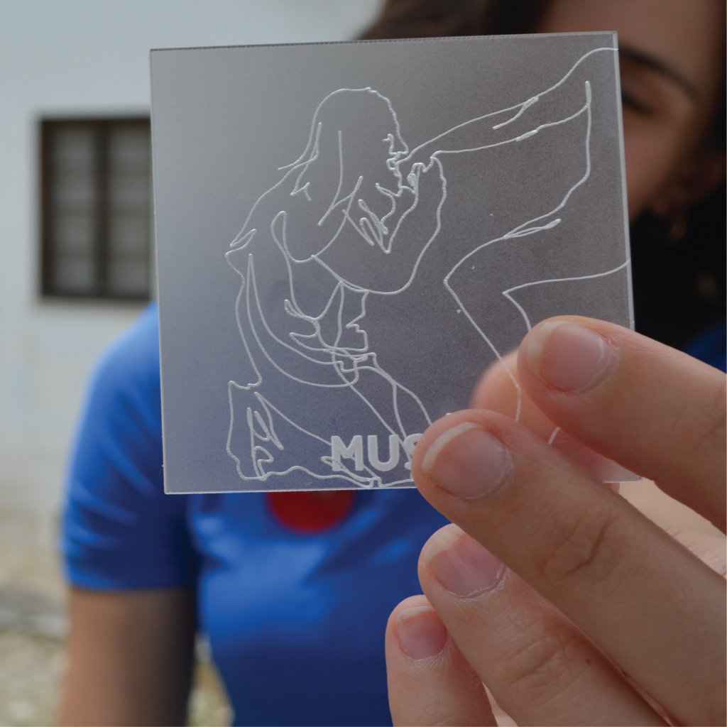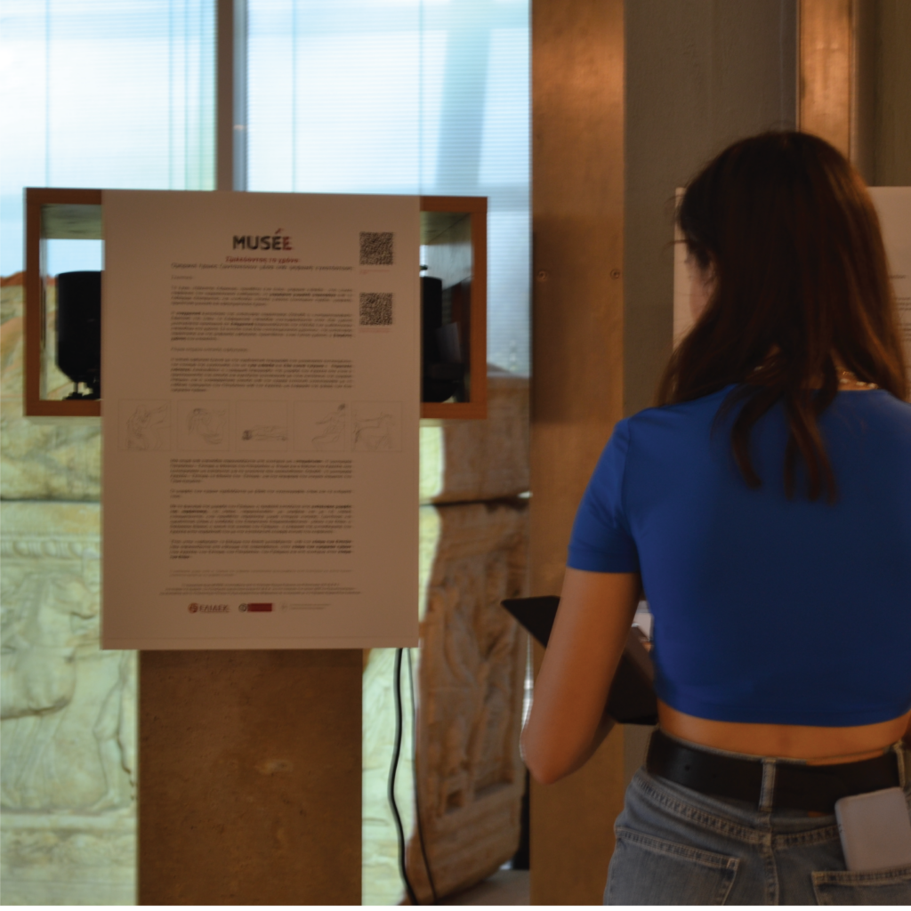 Η προβολή, εξάλεπτης διάρκειας, χρησιμοποιεί την τεχνολογία της χαρτογράφησης προβολής (projection mapping), προσθέτοντας ένα άυλο, ψηφιακό επίπεδο στις υλικές επιφάνειες του αρχαιολογικού εκθέματος, και συνδυάζει οπτικές εικόνες (κινούμενο σχέδιο, γραφικά), πρωτότυπη μουσική και αφηγηματικούς ήχους. Εικόνα και ήχος επιδιώκουν να προσελκύσουν το βλέμμα και την προσοχή του επισκέπτη στο ίδιο το έκθεμα, να τον ωθήσουν να δει και να ακούσει με εμπρόθετο τρόπο, να εντείνουν και να παρατείνουν τη θέαση.