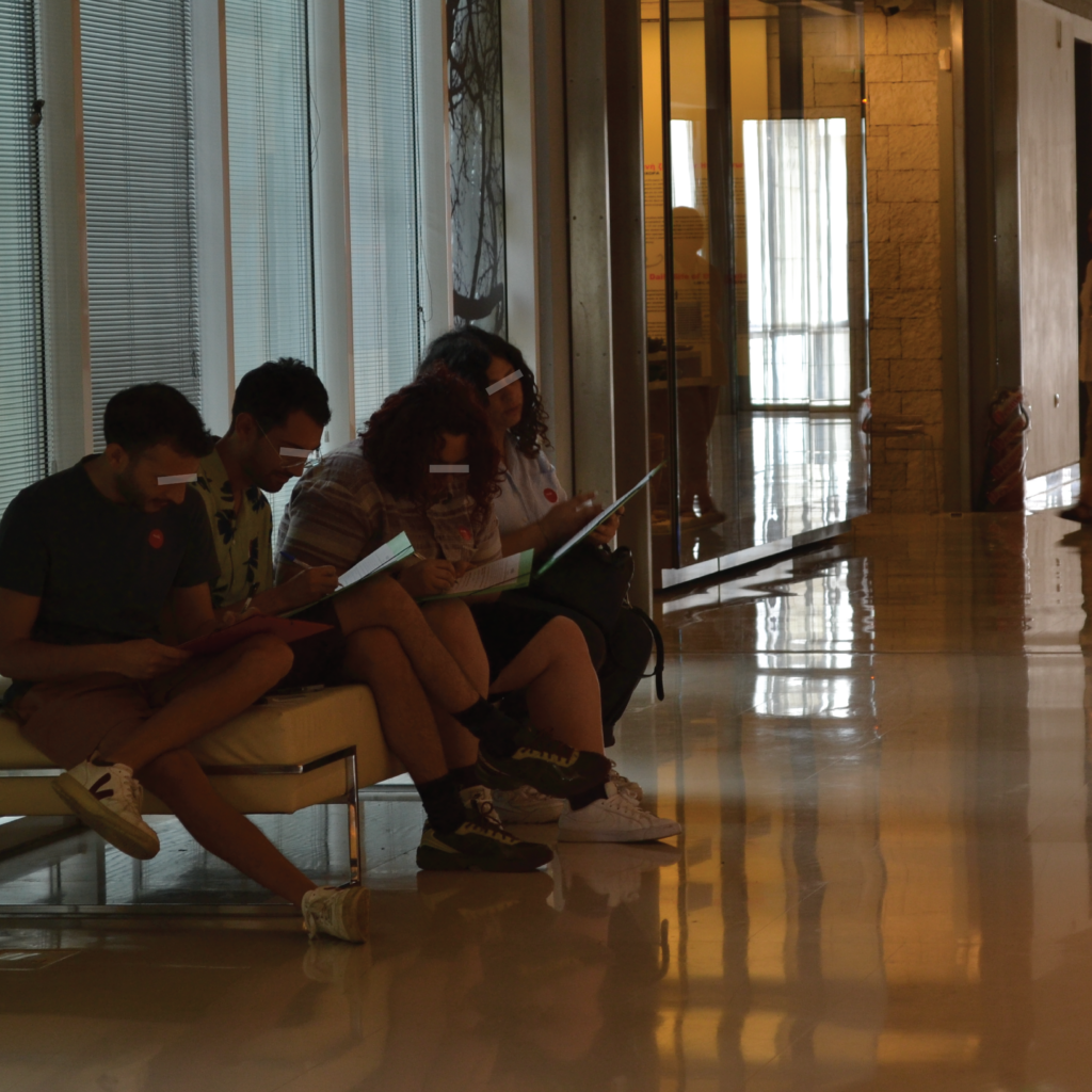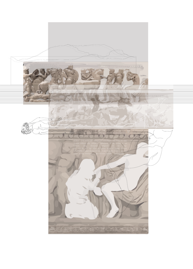 Συγκεκριμένα, η οπτική αφήγηση ξεκινά με την σχεδιαστική περιγραφή του μουσειακού αντικειμένου, τον τονισμό της οργάνωσής του σε τρία επίπεδα και δύο νοητά τρίγωνα-θεματικές ενότητες.