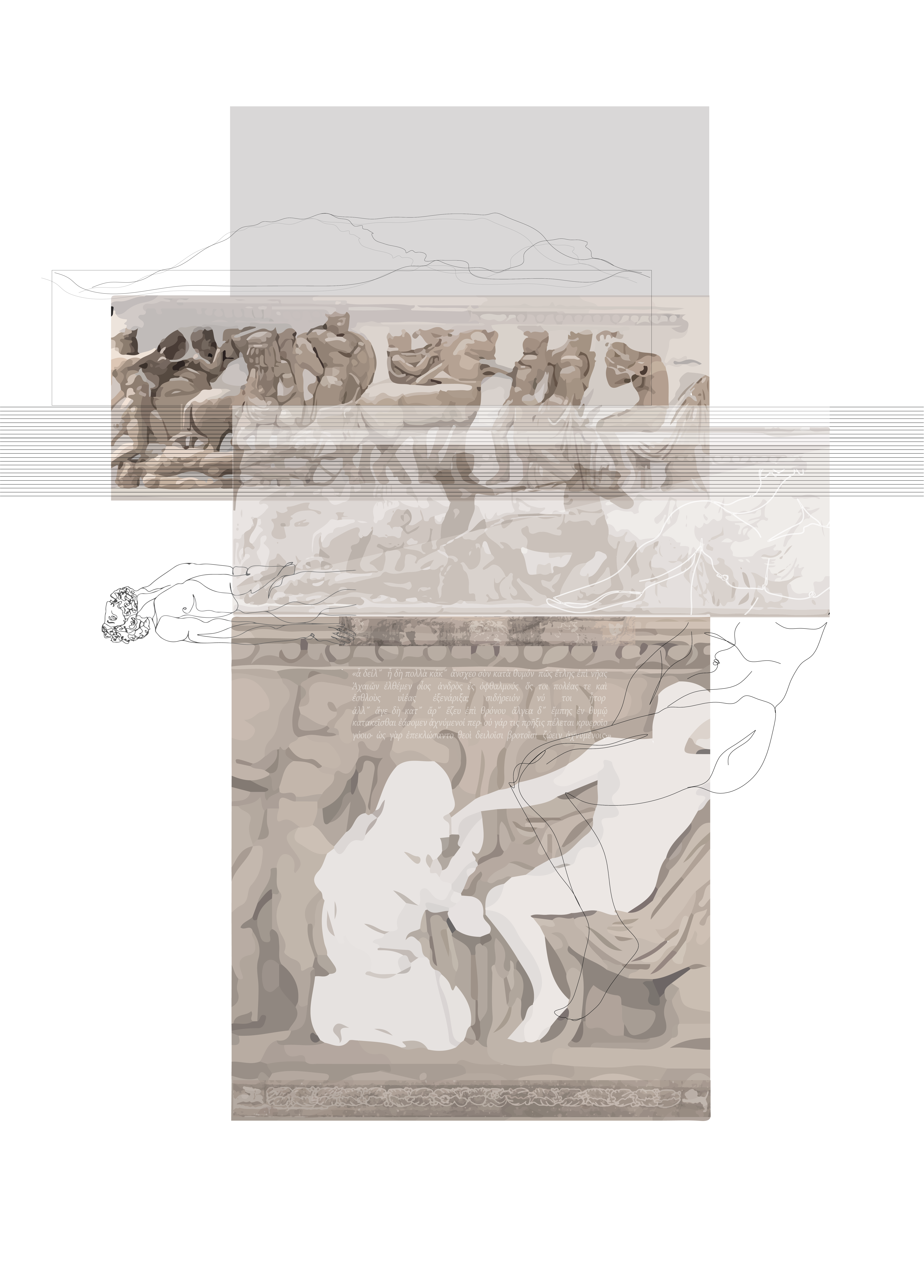 Συγκεκριμένα, η οπτική αφήγηση ξεκινά με την σχεδιαστική περιγραφή του μουσειακού αντικειμένου, τον τονισμό της οργάνωσής του σε τρία επίπεδα και δύο νοητά τρίγωνα-θεματικές ενότητες.